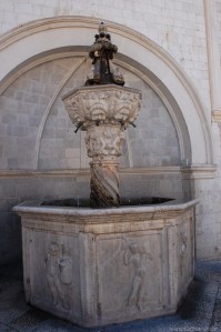 La Gran Fuente de Onofrio, ubicada al traspasar la Puerta de Pile, fue construida en el año 1438 por el arquitecto napolitano Onofrio della Cava, con quien la República de Dubrovnik firmó un contrato para construir el sistema de abastecimiento de agua de la ciudad. Mientras en la Dalmacia véneta la mayoría de las ciudades se surtían de agua construyendo aljibes para almacenar las aguas pluviales, Dubrovnik optó por conducir a la ciudad el agua de un manantial situado a 12 km. mediante la construcción de un acueducto, al más puro estilo romano.(02)