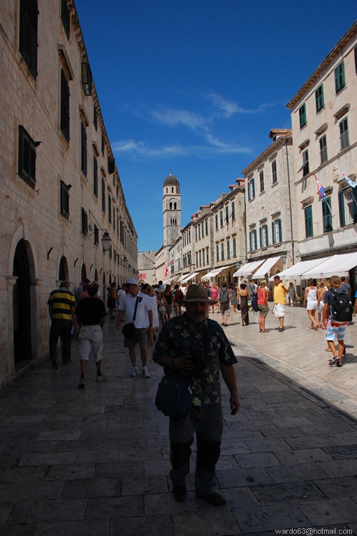 Placa es la avenida comercial de Dubrovnik y el lugar favorito de paseo de los turistas y raguseos. En ella se pueden cambiar los euros por las “Kunas” croatas, degustar un helado o hacer las inevitables compras. Al mismo tiempo es la vía más rápida de comunicación entre las puertas oriental y occidental de la ciudad, función que desempeña desde el siglo XII. Su aspecto actual es posterior al terremoto de 1667. Los pintorescos palacios de la antigua Placa fueron sustituidos por una planificada y homogénea construcción de dos filas de casas barrocas de piedra, todas de la misma altura y con fachadas semejantes. En la planta baja, el Senado de la República de Dubrovnik decretó construir unas tiendas similares, manifestando su preocupación por la actividad comercial.(04)