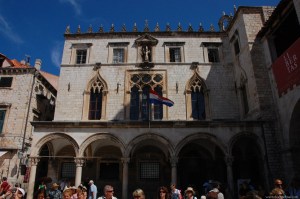 Frente a la iglesia de San Blas se halla El Palacio Sponza, uno de los edificios más bellos de la ciudad, que ha conseguido conservar su aspecto original. El edificio albergaba la Aduana, la Casa de la Moneda, el Banco, la Armería del Estado, etc. Posee un pórtico abierto hacia la Plaza Luza. Su construcción mezcla los estilos gótico y renacentista, lo que en su época fue una característica de todos los palacios importantes en las costas orientales del Adriático.(08)