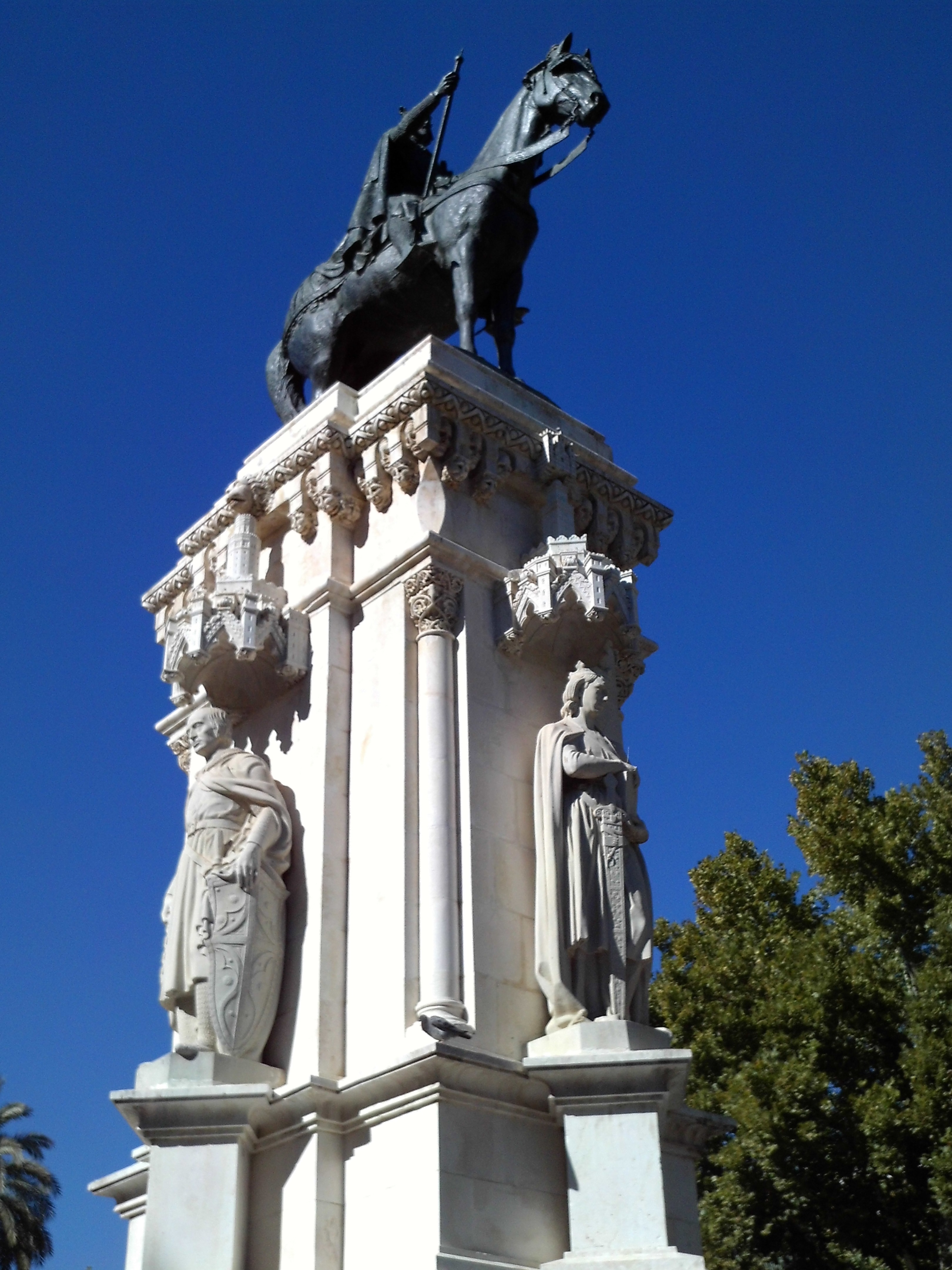 MONUMENTO AL REY FERNANDO III, EL SANTO, SEVILLAImagen de portada: El monumento en honor al Rey San Fernando en la Plaza Nueva de Sevilla. La idea de construir un monumento para el Rey Santo partió del alcalde, Francisco Javier Cavestany en 1848, cuando se estaba construyendo la plaza, en el solar que ocupó el Convento “Casa Grande de San Francisco”. El monumento en honor al Rey San Fernando, se encuentra en el centro de la Plaza Nueva, en Sevilla. En 1861, se retomó la iniciativa con la Reina Isabel II. Pero diversos cambios retrasaron la decisión hasta que el Rey Alfonso XII colocó la primera piedra del monumento, el 27 de Marzo de 1877. La obra acabó en el siglo siguiente, siendo inaugurada el 15 de Agosto de 1924. En la construcción definitiva del monumento intervinieron los artistas más importantes del momento. El pedestal y la idea de conjunto son de Juan Talavera y Heredia. Los lados están compuestos por las figuras de cuatro personajes que acompañaron al Santo Rey en la conquista de Sevilla. Alfonso X, es obra de Enrique Pérez Comendador. Garci Pérez de Vargas, es obra de Joaquín Sánchez Cid. Ramón Bonifaz, es de José Lafita Díaz. Don Remondo, obra de Alfonso López Rodríguez. Corona el pedestal, la estatua ecuestre de San Fernando obra de Joaquín Bilbao.