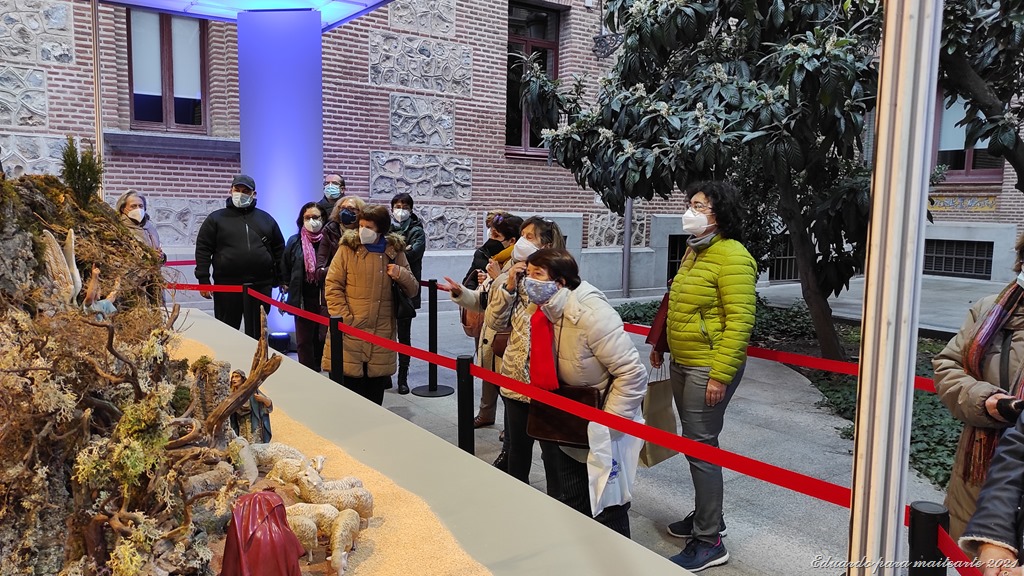 Este belén, situado en la Casa de Cisneros de la Plaza de la Villa de Madrid, fue el primero con el que comenzó una visita guiada para conocer los nacimientos con más historia del centro de Madrid. La visita estuvo conducida por la guía oficial: Luisa Velasco, quien no sólo nos contó las tradiciones y el origen de la celebración de la Navidad, sino que nos fue detallando la magnífica puesta en escena del nacimiento de Jesús en los lugares a los que no fue llevando. Es una composición basada en un estilo de pueblo castellano, que se desarrolla en una superficie de 25 metros cuadrados. Incluye varias figuras centenarias que raramente se muestran al público. En este trabajo, realizado por la Asociación de Belenistas de Madrid, se incluyen varias escenas de los evangelios con figuras de gran realismo y vistas de profundidad que permiten ver el interior de las viviendas, talleres, etc.