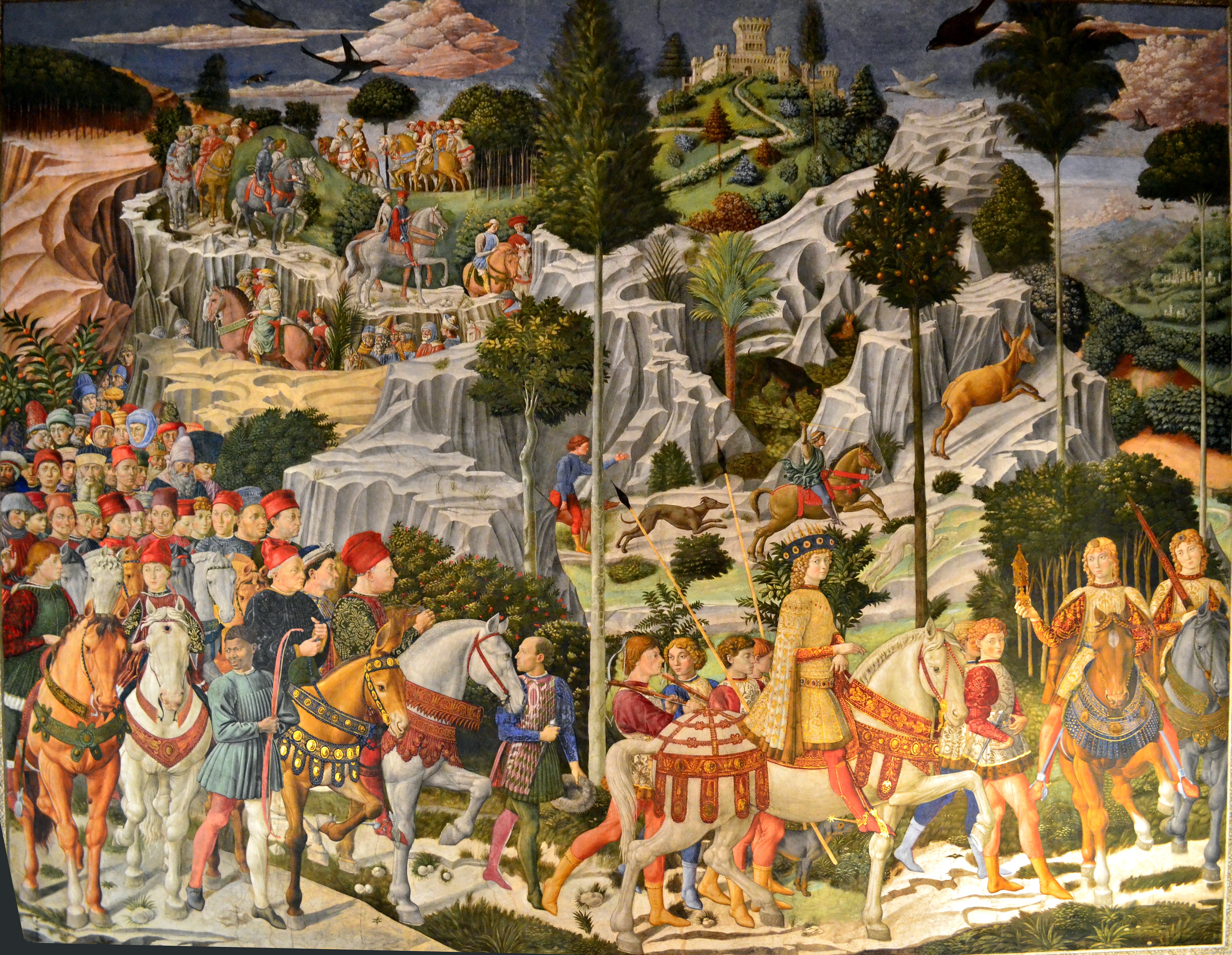 Benozzo Gozzoli pintó al fresco entre 1459-61 para la capilla del palacio Médici-Riccardi este tema, en el que aparecen los miembros de la familia Medici y otros personajes principales de la Florencia del momento: