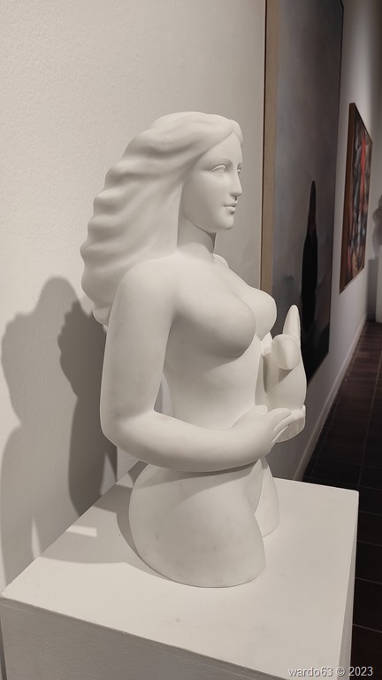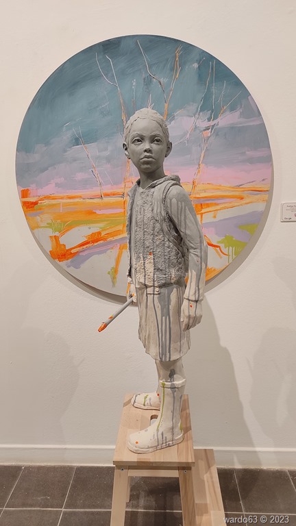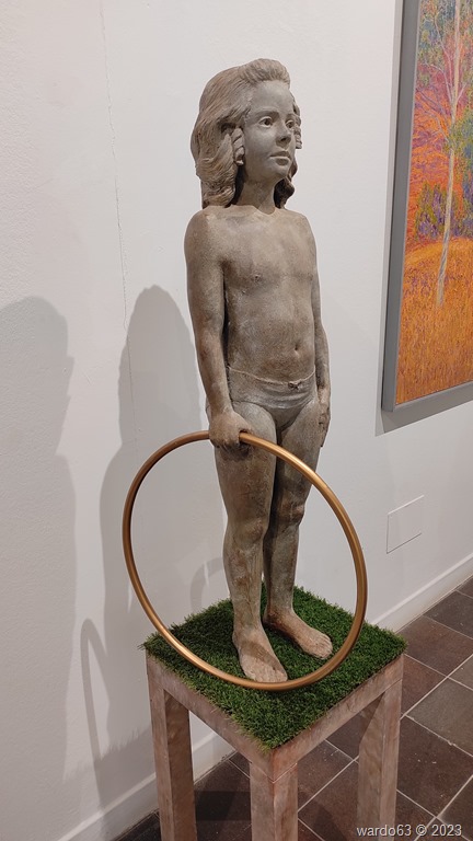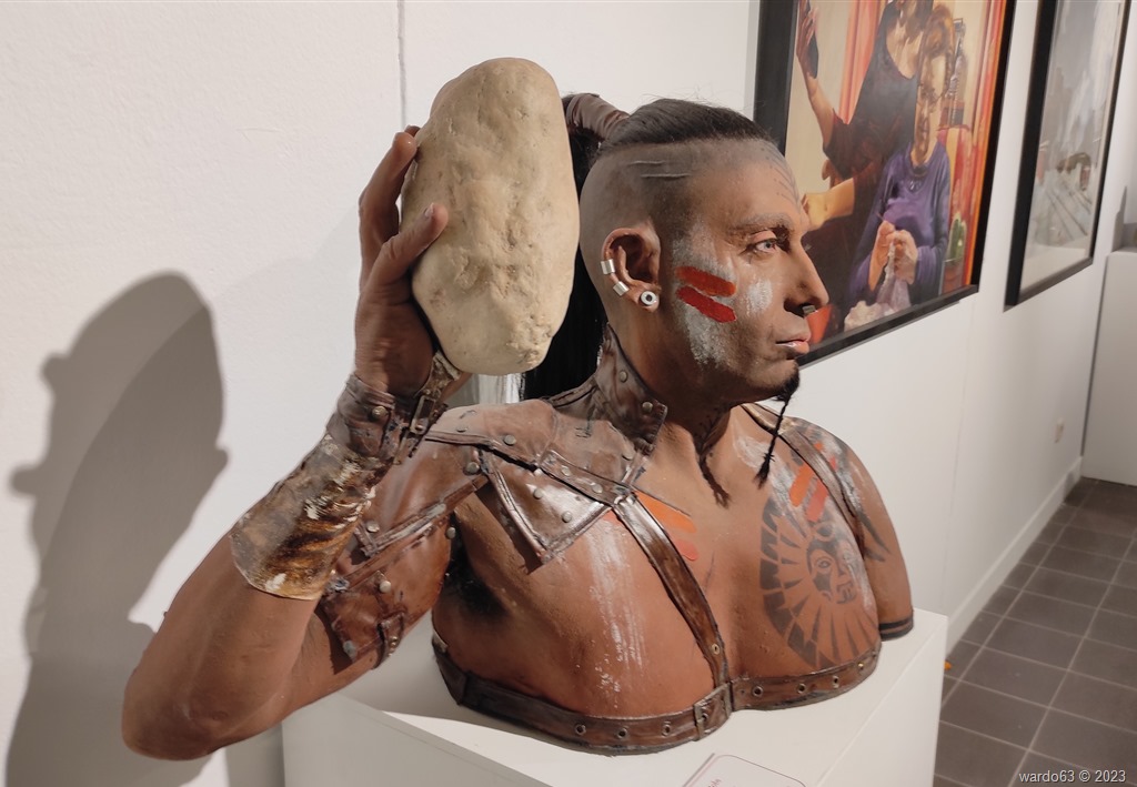 Esta entrada tiene un contenido exclusivamente fotográfico con imágenes de algunas de las obras expuestas que pudimos contemplar en nuestra visita a la exposición. Sergio García Castellanas Resina acrílica y pátina efecto bronce – 70 x 60 x 122